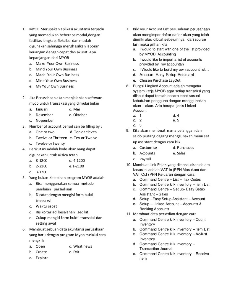 Soal Myob Dan Jawabannya / 50 Soal Dan Jawaban Ujian Materi Akuntansi Perusahaan Dagang Jawabanku Id : Contoh soal ekonomi kelas x semester 1 kurikulum 2013 beserta.