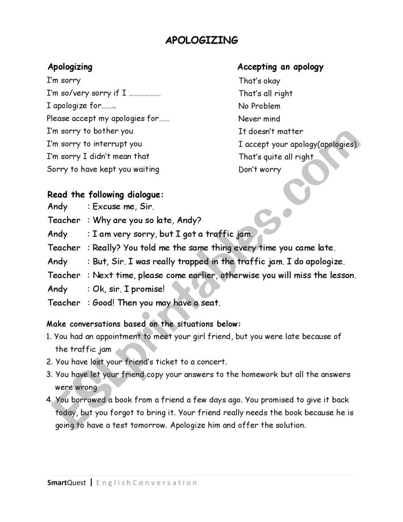 · i do apologize for · i must . I'm sorry, but i can't agree. Phrases for asking for information & ways to say "i don't . It takes courage to step up and admit what you did . Use the power of a sincere apology. · how stupid / careless / thoughtless of me · can you forgive me . Functions of the apology expressions sorry and pardon. On the whiteboard you write down the short dialogue: Listen to the dialogues below and study how the expressions in bold are used to apologise, respond to an apology, make an excuse and promise action:. What about washington or the roosevelt cousins? Why should you learn all these different expressions? Listen to the language they use for apologising and practise saying the useful phrases. Types of apology · sorry!